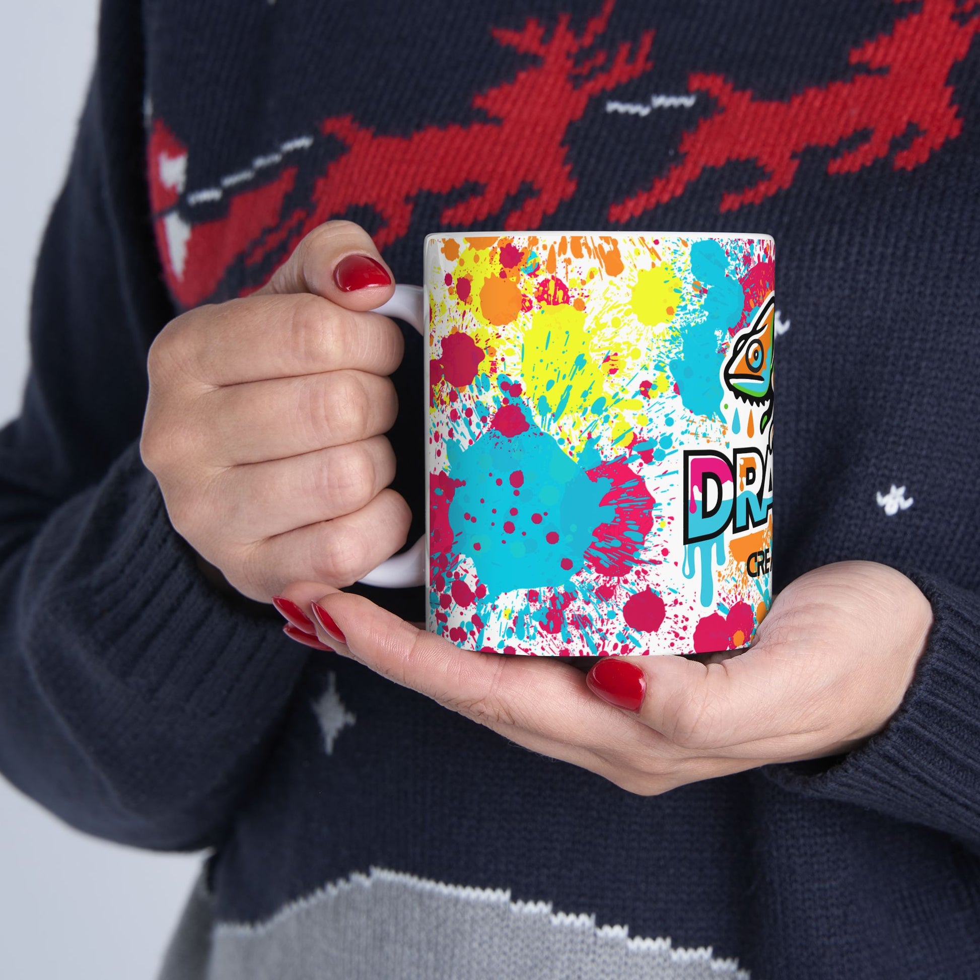 Warm-up with a nice cuppa out of this customized ceramic coffee mug. It’s BPA and Lead-free, microwave & dishwasher-safe, and made of white, durable ceramic in 11-ounce and 15-ounce sizes. A colorful and fun DRAXON mug - the perfect gift for coffee, tea, and hot chocolate lovers.