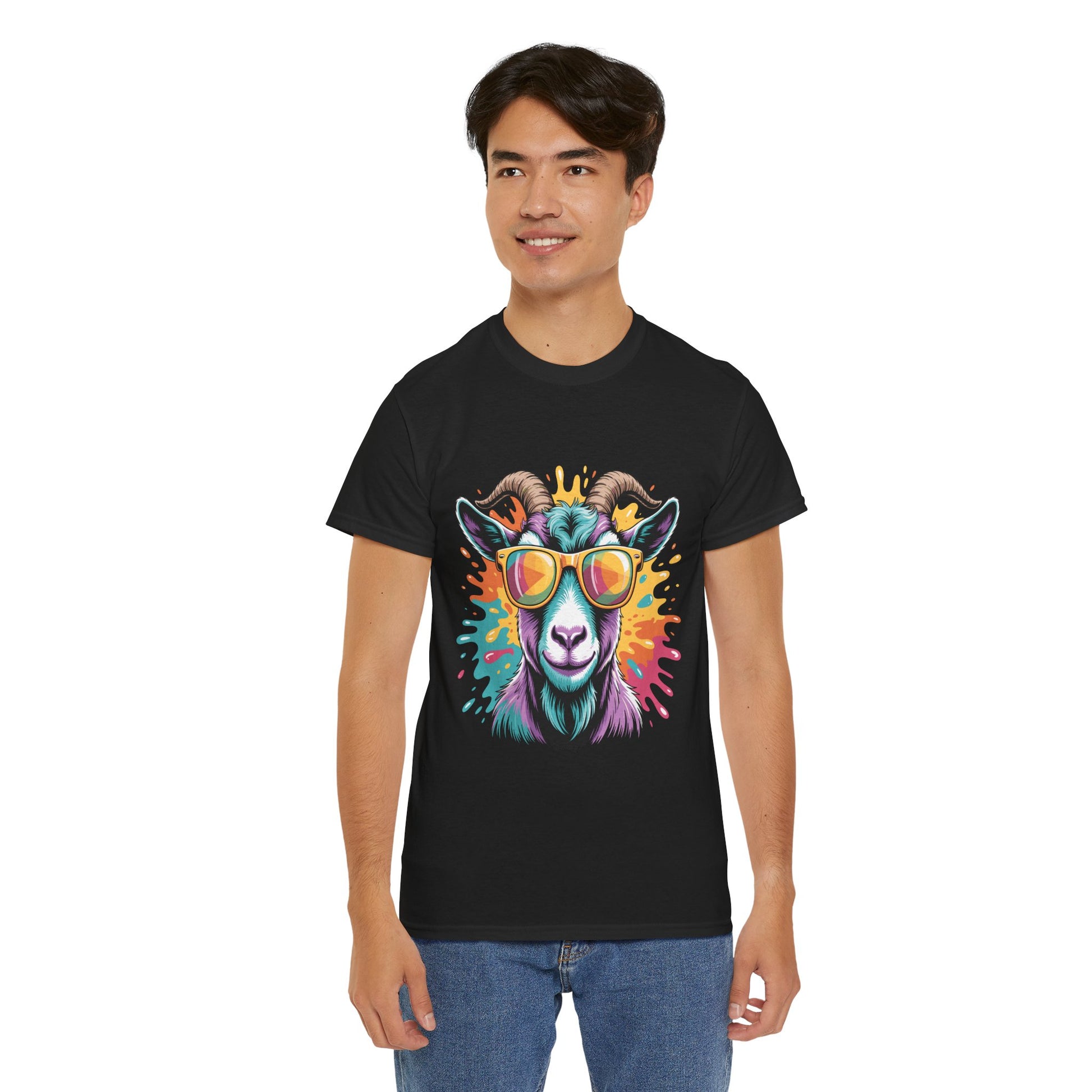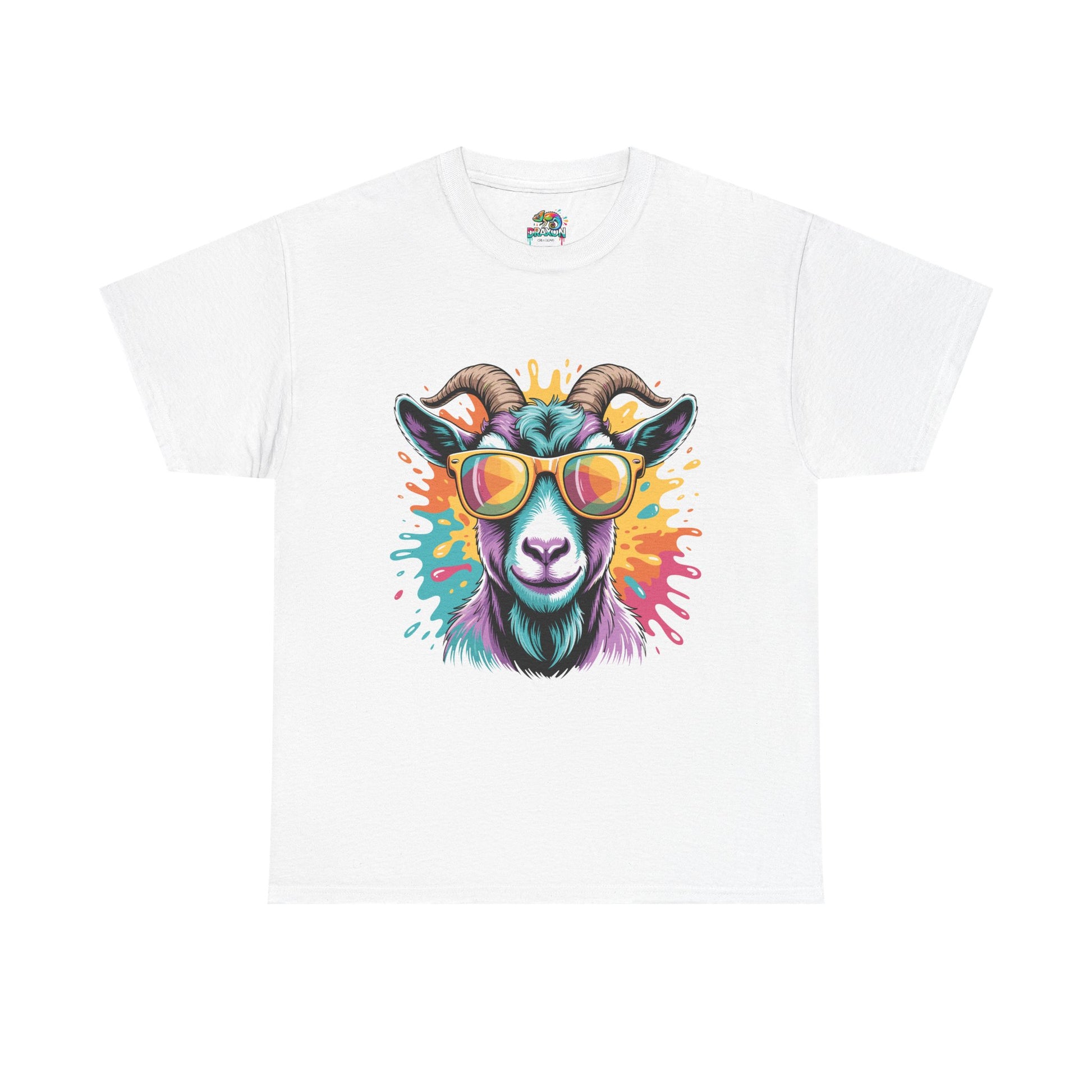 The unisex heavy cotton tee is the basic staple of any wardrobe with this 'Pastel Goat'. It is where casual fashion grows. The specially spun fibers provide a smooth surface for premium printing vividity and sharpness. No side seams mean there are no itchy interruptions under the arms. The shoulders have tape for improved durability.