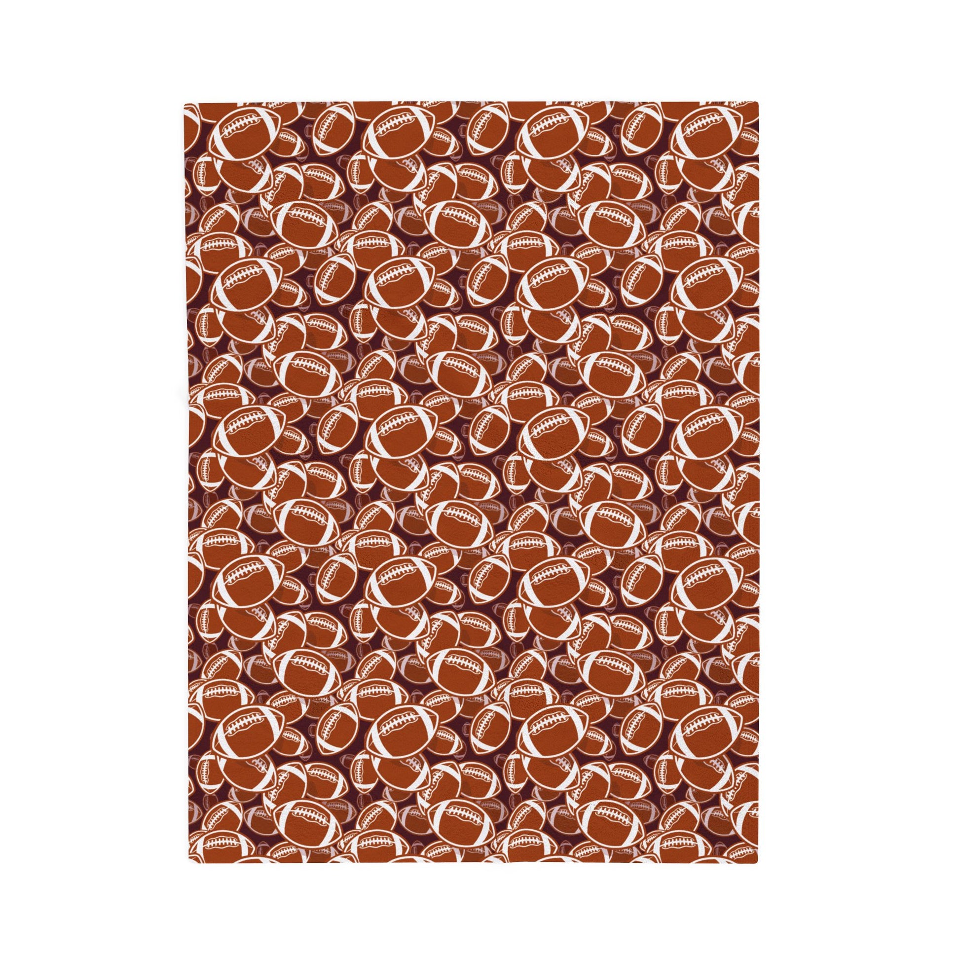 Stay cozy with this soft and plush Velveteen Blanket featuring "Footballs". Perfect for snuggling up on the couch during movie nights or adding a pop of color to your bedroom decor. Ideal for those who love quirky and unique designs. Great for gifting on birthdays, holiday seasons, or as a housewarming present.